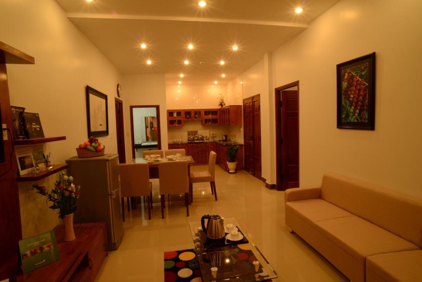 Two-Bedroom Apartment. Offering more space, the suite features a seating area fitted with a sofa, a cable TV and air conditioning. It also has a kitchen equipped with a microwave, an electric kettle, a dining area and a stovetop. It also offers drinking water, free newspaper and views of the city. ;